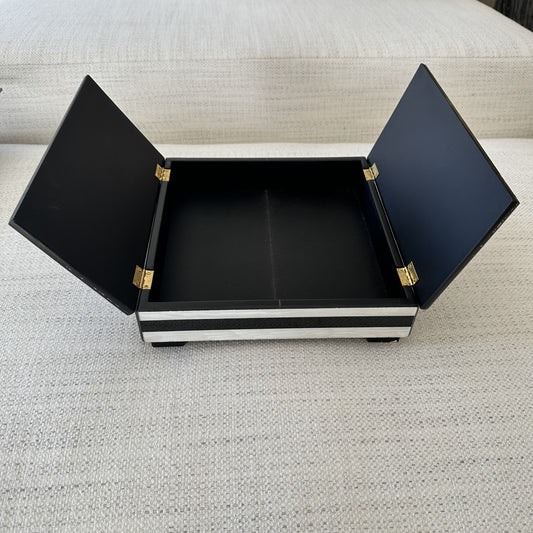 Black and Ivory Stripe Double Lid Square Box